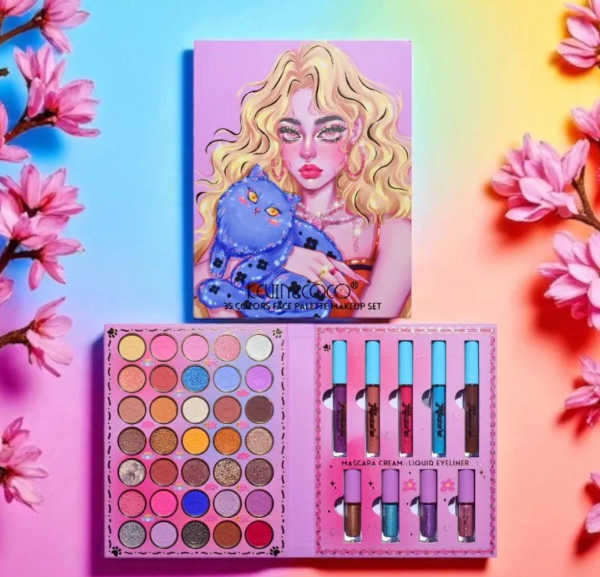 6 eyeliners liquides pailletés dans des tons scintillants : or, lilas, argent, bleu électrique, rose doré…