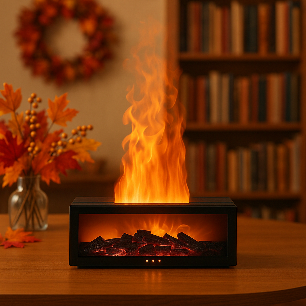 🍂 Installez-le sur une jolie table, près de votre bibliothèque ou au cœur d’une déco automnale, et laissez-vous envelopper par la douceur d’un feu de cheminée sans la fumée.