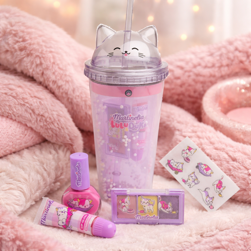 La MARTINELIA LULU&DUKI BEAUTY BOTTLE est le set de beauté le plus adorable pour les enfants qui aiment les chatons ! Cette bouteille avec des oreilles de chat comprend tout le nécessaire pour s'amuser avec le maquillage : tatouages, vernis à ongles, gloss à lèvres et une palette de fards à paupières de 3 teintes. Avec son design charmant et sa taille parfaite pour l'emporter partout, ce set est idéal pour explorer la créativité et ajouter une touche de magie féline à chaque jour.