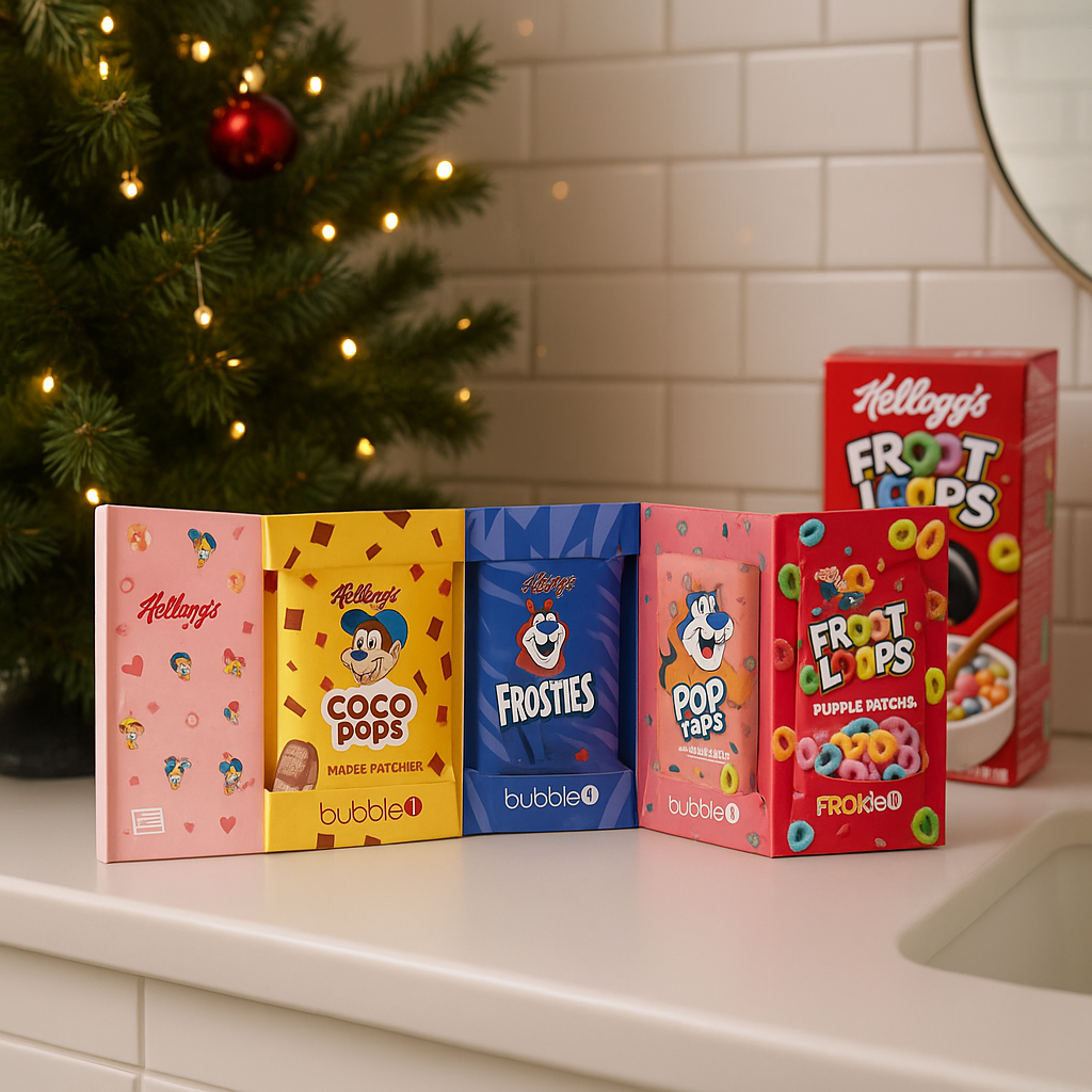 Inspiré par les céréales emblématiques de Kellogg's, y compris Froot Loops, Frosties, Coco Pops et Pop-Tarts, chaque produit déborde d'énergie ludique et de bienfaits pour la peau.